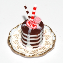 This is a beautiful 1:12 chocolate and vanilla pastry with marshmallow sauce and goodies on top. It comes on a small pastry plate.