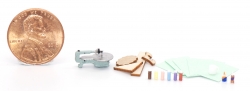 This is a fun set for the interior of the He Shed. It comes with glue bottles, paint bottles and a Scroll Saw all 3D printed and ready to paint. It also comes with small laser scraps and paper to add to the work bench.