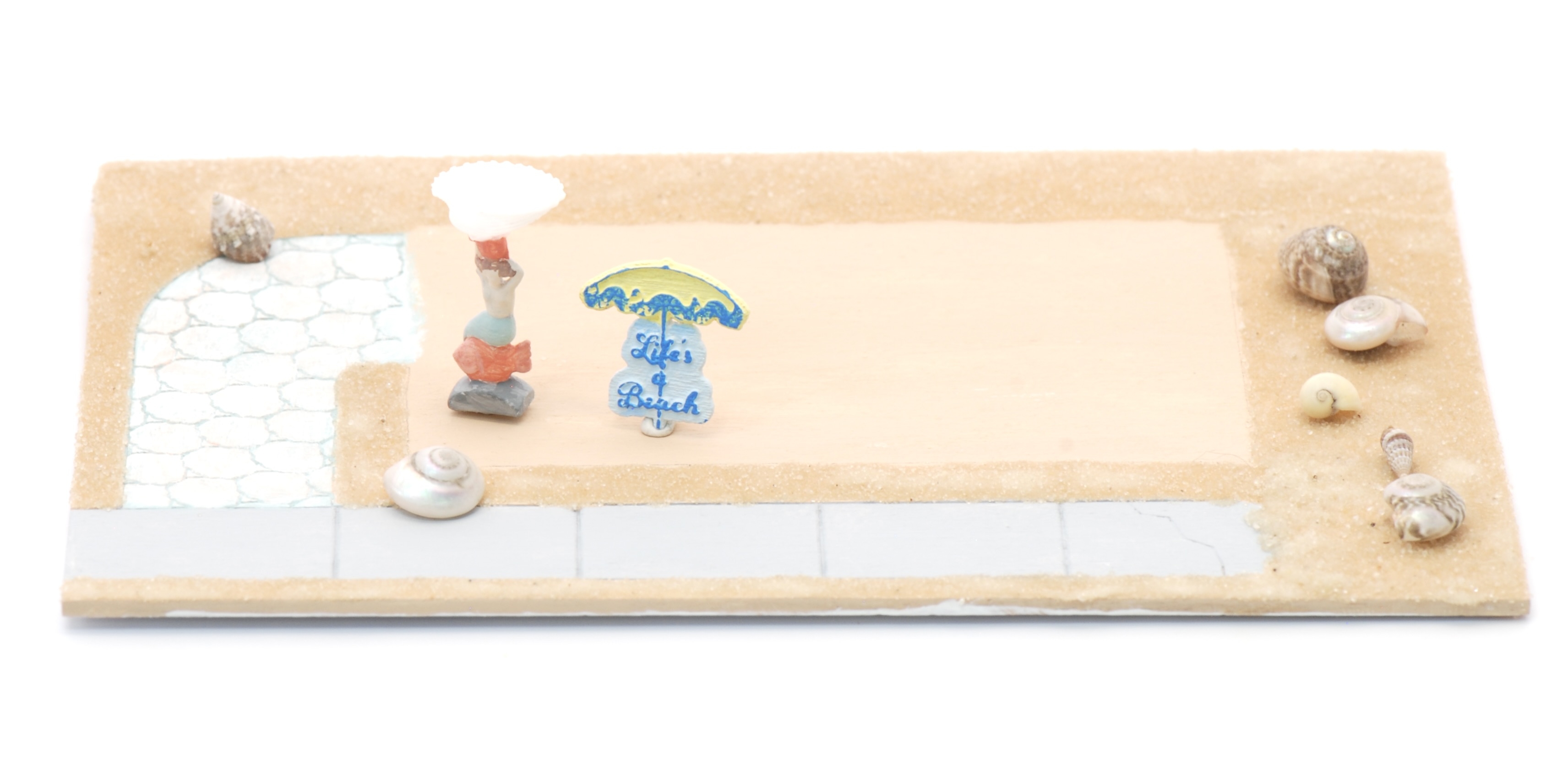 The base kit comes with the base, sand, more shells, the mermaid fountain and the small sign for the door.
