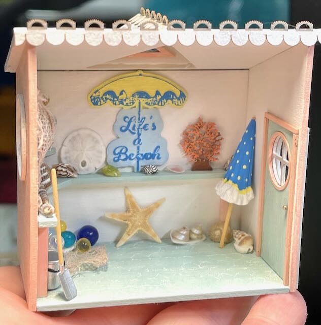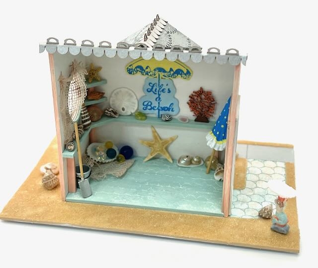 The Accessory pack will come with sea shells, coral, starfish, sand dollar, clam bucket and shovel, beach umbrella, fishing net, large "Life is a Beach" sign and glass floats. The kit is a lot of fun to help fill other beach scenes you may be working on as well.