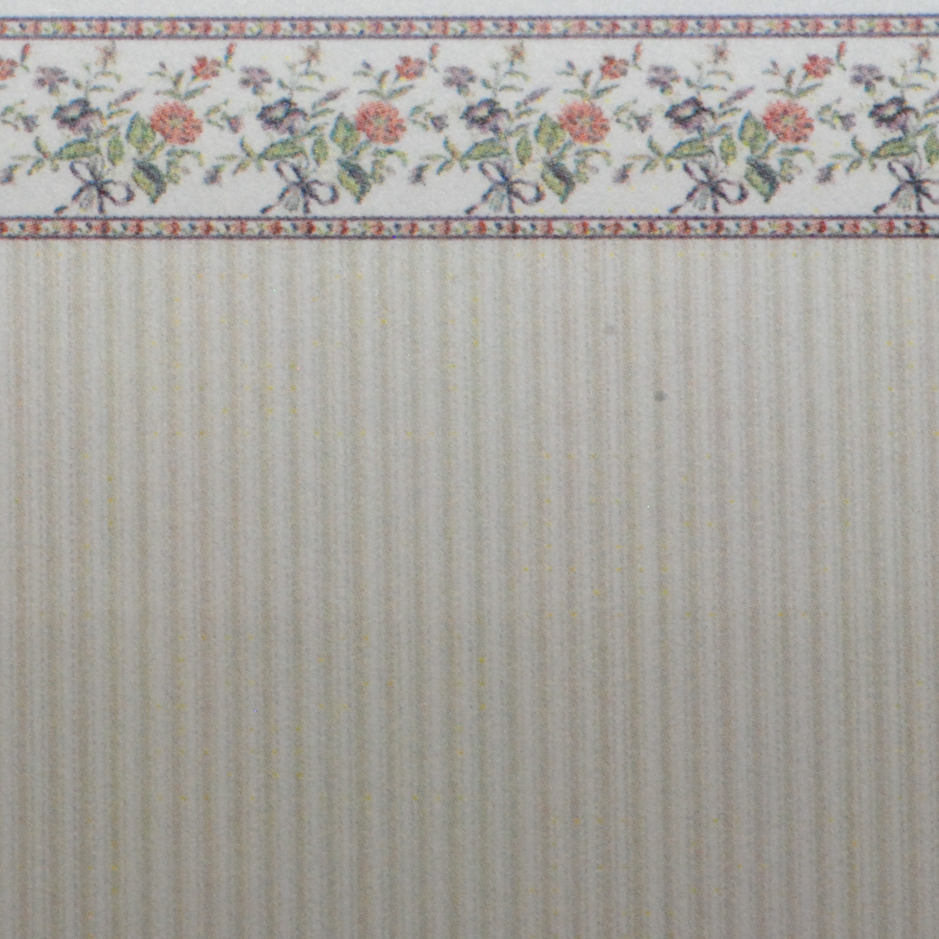 This is wonderful quarter scale wallpaper made by Itsy Bitsy Mini. It's a very large sheet to do a whole room with out cutting the paper into chunks. The dimensions are 7 7/8" by 5" This wallpaper is very detailed and unfortunately the pictures don't do it justice.