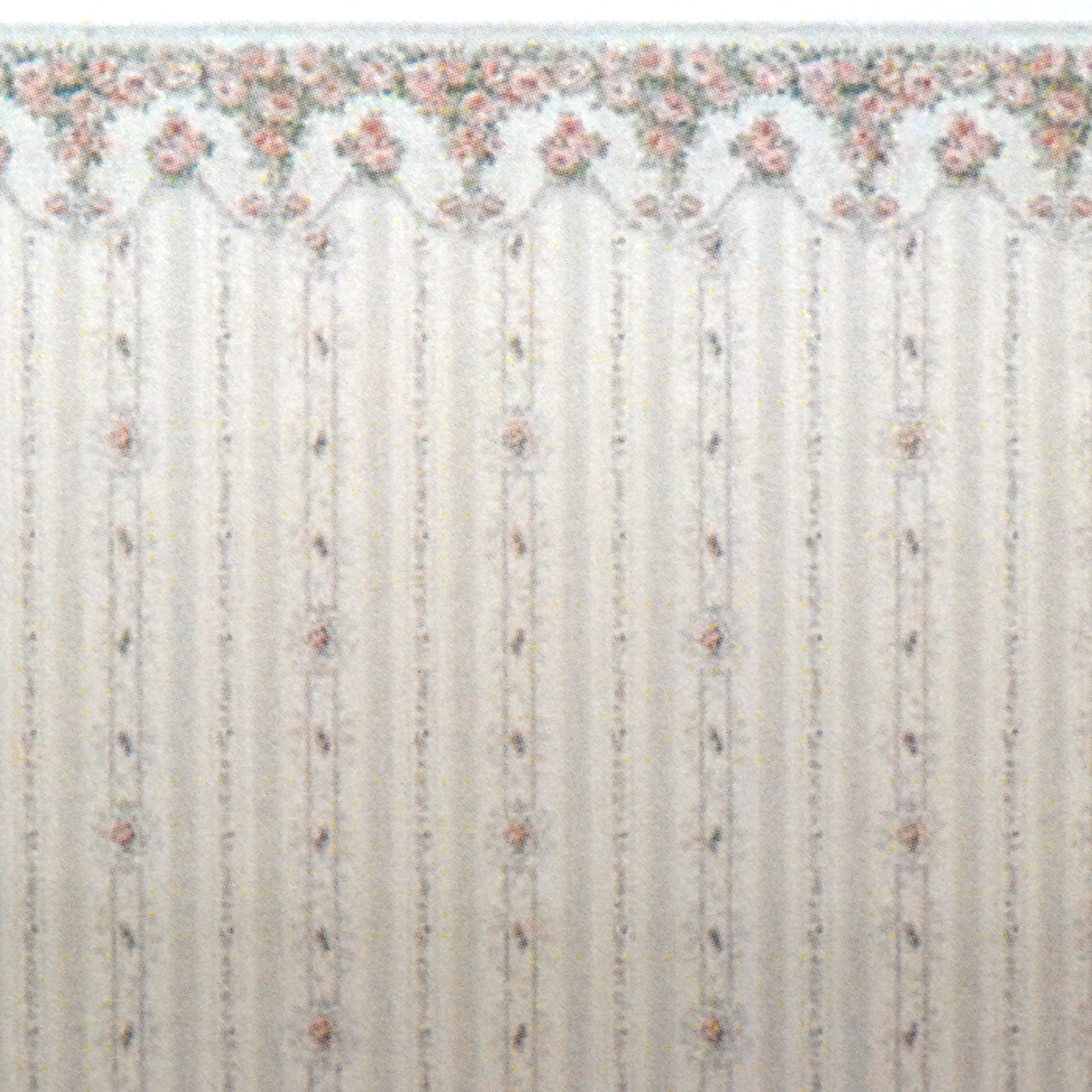 This is wonderful quarter scale wallpaper made by Itsy Bitsy Mini. It's a very large sheet to do a whole room with out cutting the paper into chunks. The dimensions are 7 7/8" by 5" This wallpaper is very detailed and unfortunately the pictures don't do it justice.