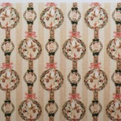 This is wonderful quarter scale wallpaper made by Itsy Bitsy Mini. It's a very large sheet to do a whole room with out cutting the paper into chunks. The dimensions are 7 7/8" by 5" This wallpaper is very detailed and unfortunately the pictures don't do it justice.