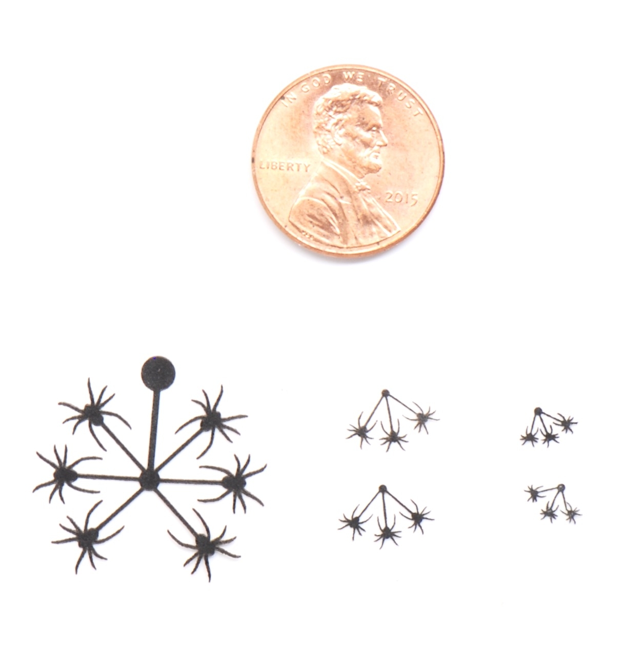 These laser cut spiders are wonderful to use in your miniature scene! They come in a set of 6 and you can choose your sizes. Just cut them off the supports and glue onto your project.